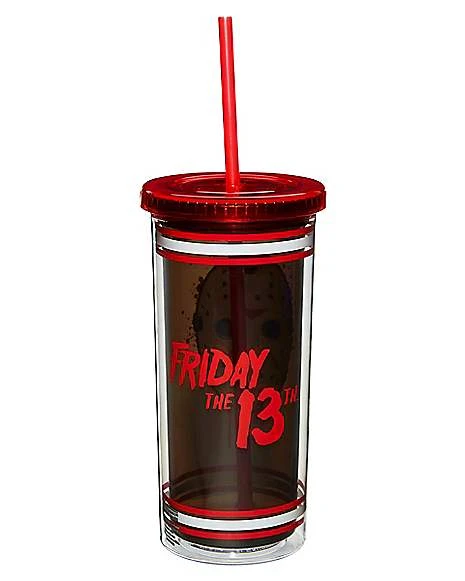 Screaming and running away from a killer all night can sure make you thirsty! Quench your thirst this Halloween with this officially licensed Jason Voorhess Jersey Cup with Straw and you’ll never have to worry about Jason catching you!